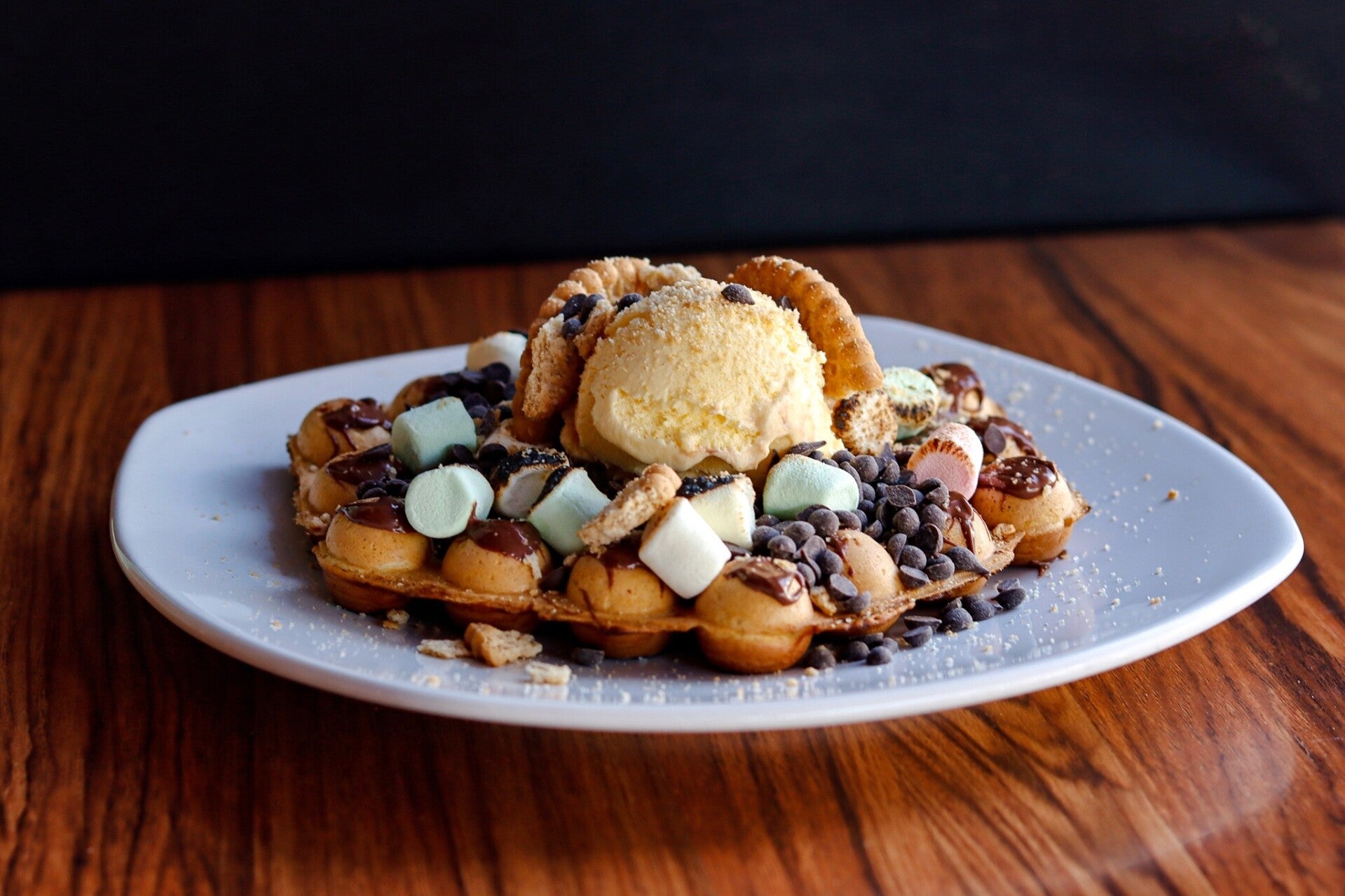 Sumérgete en el ambiente único de Mushu Bubble Waffles en Jardín Balbuena, Ciudad de México. Disfruta de nuestros bubble waffles recién hechos, con ingredientes frescos y una gran variedad de toppings. ¡Ven y vive la experiencia completa!